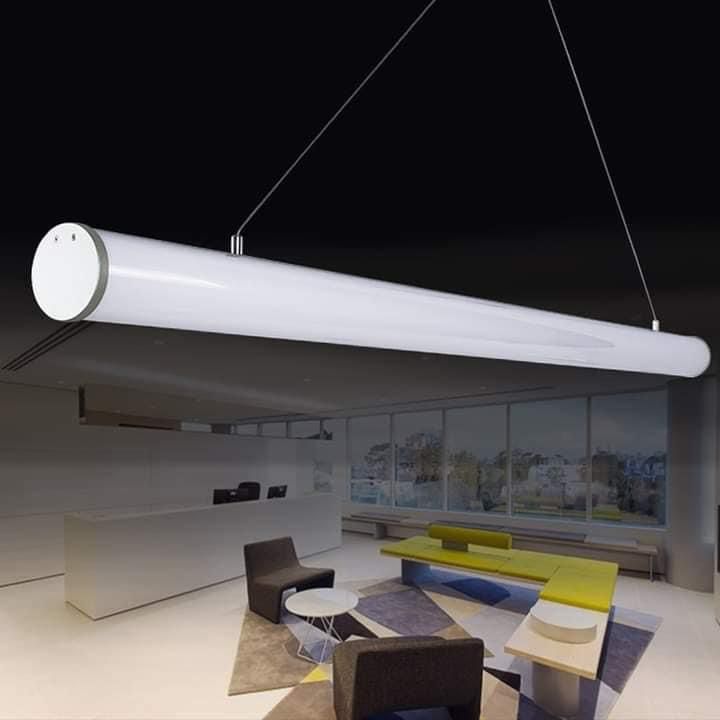 A truly unique linear light fixture, our 2/4/6/8 ft is a linear light fixture which features a rounded lens, producing a dramatic wrap around illumination effect. With a 4 Inch diameter, the premium white rounded lens adds a decorative and modern touch to any lighting application while providing even and continuous lighting. This highly adaptable light fixture adds character to office spaces, classrooms, conference rooms and more, but can also be used for commercial, industrial, and retail lighting environments. Suspend from any ceiling type to add a flare of decorative linear lighting to your space.